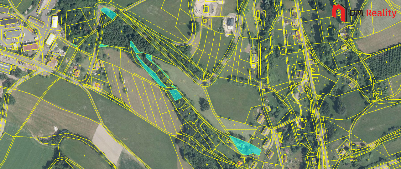 Parcely č.777/7, 798/7, 798/14, 799, 800/3, 800/4, 800/7, 805 - o výměře 1248 m2 (lesní pozemky).